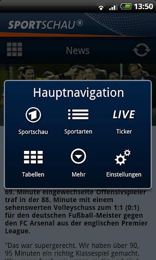 Über das Menü können Sie zwischen weiteren Nachrichten aus einzelnen Sportarten, Live-Ticker, Tabellen und Ergebnissen sowie Hinweisen auf Sportsendungen in Hörfunk und Fernsehen wählen. Unter "Mehr" können Fans ihren Lieblingsverein auswählen. "Mein Verein" wird dann in Tabellen und Ergebnis-Übersichten optisch hervorgehoben.