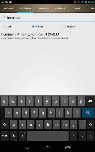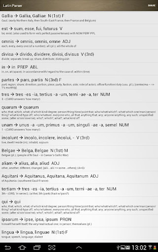 - Parse any Latin word to English, regardless of conjugation - includes full breakdown of the word's form.