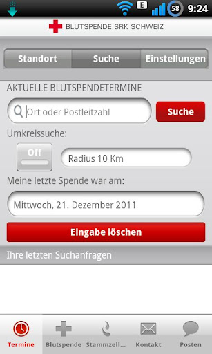 Egal ob an Ihrem aktuellen Standort oder für die weitere Planung: Mit der integrierten Terminsuche wissen Blutspender stets genau, wann und wo die nächsten Blutspendeaktionen und -termine stattfinden und können sich bis zu 2 Tage vorher per E-Mail oder SMS daran erinnern lassen.