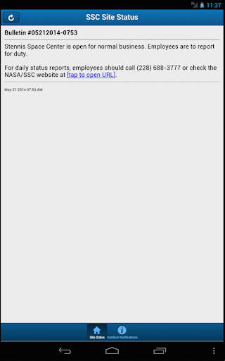 View the current Site Status, Severe Weather and Outdoor Notification System info for Stennis Space Center (SSC), including Push Notification alerts whenever a update to Stennis’ status is posted. SSC Site Status is a universal product running on both phones and tablets.