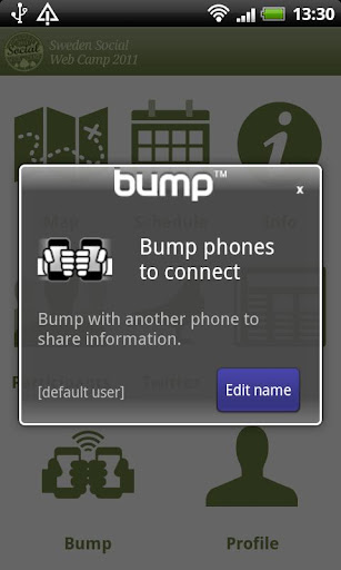 • Bumpa med andra deltagare för att snabbt dela kontaktinformation.