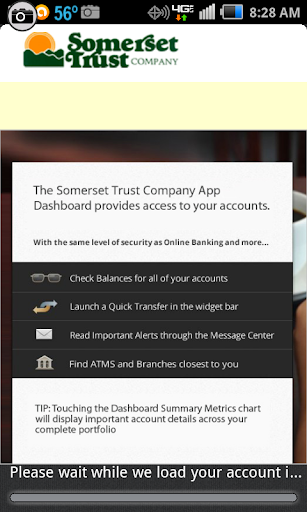 Some features are available for eligible customers and accounts only. There is no charge from Somerset Trust Co for STC Mobile Bank. There may be message and data rates from your communications service provider. STC Mobile Bank service may be interrupted by various reasons including service outages affecting your phone, wireless or internet provider; technology failures; and system capacity limitations.