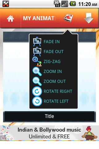 Versatile transition through animation like Fade In,Zigzag,Zoom In etc. For best performance use Fade In,Fade Out,Zigzag,Zoom In,Zoom Out.