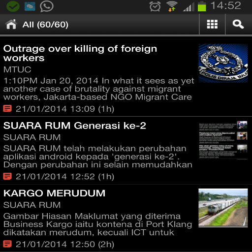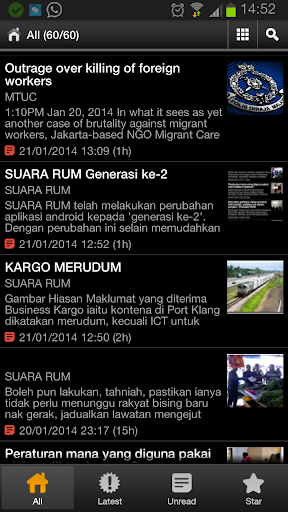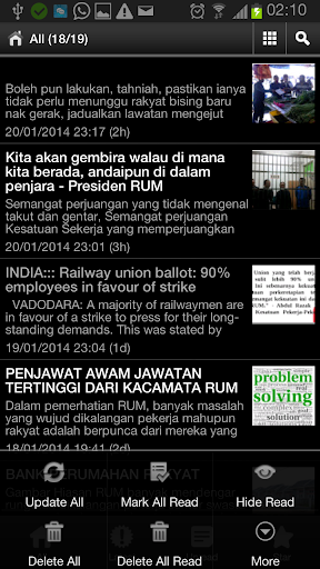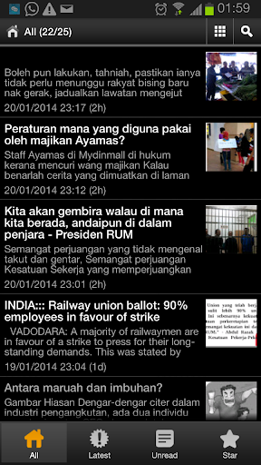 2. dengan menyentuh ikon "unread" artikel yang belum anda baca akan dipamerkan