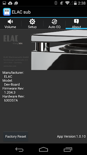 This APP is used as remote control for the ELAC subwoofer models SUB 2050, SUB 2070 and SUB 2090, using BLE (Bluetooth Low Energy) as remote control protocol.