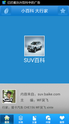 SUV :运动型多用途汽车。SUV一般前悬架是轿车型的独立悬架,后悬架是非独立悬架,离地间隙较大,在一定程度上既有轿车的舒适性又有越野车的越野性能。