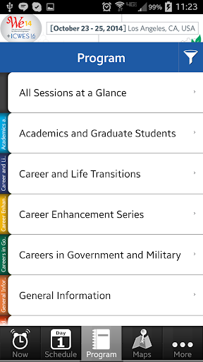 • Program: Browse the entire event program to build your personal schedule, bookmark sessions or speakers, or access session handouts as available.