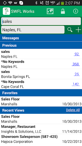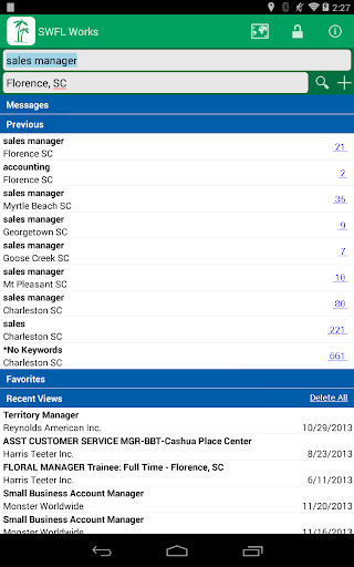 Southwest Florida Works Mobile lets you instantly return to previous searches, recently viewed jobs and your favorite jobs.