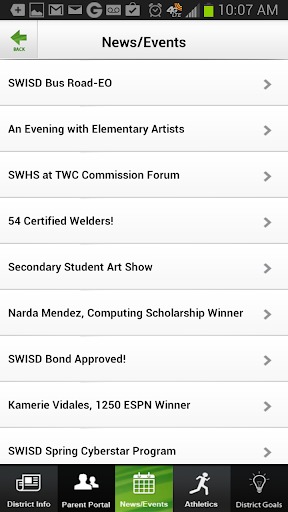 SWISD District Mobile application provides an engaging communication tool that the District will utilize to communicate their message effectively throughout the SWISD community using mobile technology. The SWISD Community consisting of students, faculty, administration, parents and the community will be able to download the app and access in real-time "What’s Happening" within the district. This will allow SWISD leadership team to reach the growing SWISD population on the fastest platform