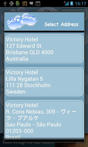 If you get a message telling you that Safe and Sound cannot find your address, make sure you have an active data connection and try searching again. This search uses a Google service to match your address and sometimes it can be busy or time out.