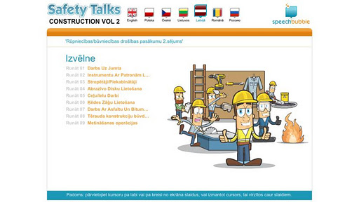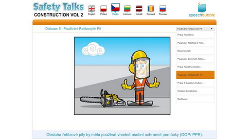 SpeechBubble Safety Talks are all developed with help from 3rd party Health and Safety Professionals and uses real translation houses for the different languages. As well as the professional and accurate approach to the content of Safety Talks they are also illustrated in Hi-Res Vector so it is a very rich media to use and understand.