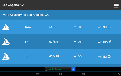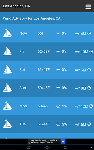 Sailing Weather is a simple app used to determine if the weather forecast is good enough to go sailing based on your preferences. Set your preferred weather conditions for temperature, rain, wind and a sail boat icon is displayed if the weather is within those parameters, a house icon is displayed otherwise.