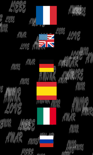 Cinq animations, pleines de petits cœurs, défilent tour à tour agrémentées de textes romantiques dans la langue sélectionnée.