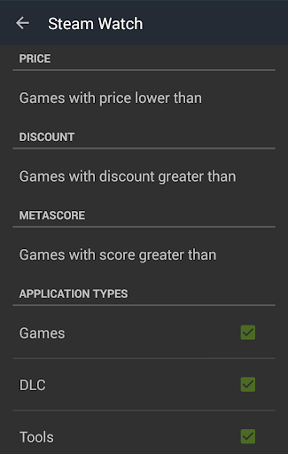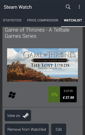- Watchlist. Add games to your watchlist and select maximum price or minimum discount to be notified about (maximum 20 games). Every time a game on your watchlist meets your requirements you will receive a notification (roughly every 4 hours).
