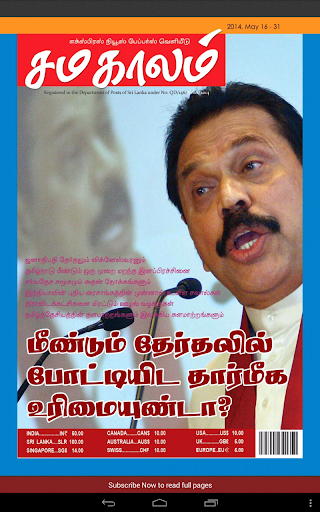 March 16-31, 2014: இலங்கைத் தமிழ் இதழியல் துறைக்கு புதியதொரு வரவாக சமகாலம் செய்திச் சஞ்சிகை உள்ளது. இரு வாரங்களுக்கு ஒரு முறை வெளியாகும் இச்சஞ்சிகை இலங்கை வாழ் தமிழ் மக்களின் இன்றைய அரசியல், சமூக, பொருளாதார மற்றும் மனிதாபிமானத் தேவைகள், பிரச்சனைகள் குறித்த ஆழமான ஆய்வுத் தன்மையுடைய பார்வையொன்றை எப்பொழுதும் முன்வைக்கிறது. மேலும் தமிழ் மக்களின் எதிர்காலப் பாதையைச் செம்மையானதாக வகுப்பதற்கு உதவக் கூடியதான கருத்துப் பரிமாற்றல்களைச் செய்வதற்கான களத்தை அமைத்துக் கொடுப்பதையும் இச்சஞ்சிகை நோக்கமாகக் கொண்டுள்ளது
