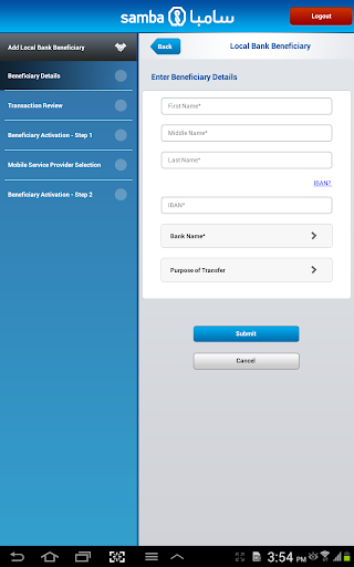 Now you can perform your banking transactions on your Android Tablet just like you do on your computer with SambaOnline! It's easy, secure and available for all Samba customers. Simply download the SambaMobile application and log-in using your SambaOnline username and password. If you are not a SambaOnline user you can enroll directly from the SambaMobile application; simply click on “New user registration” and follow the instructions.