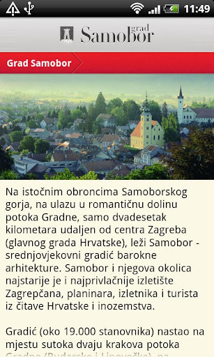 Osim svih relevantnih informacija o gradu, njegovim institucijama, povijesti i povijesnim spomenicima, programima i događanjima te ugostiteljskoj i smještajnoj ponudi, aplikacija Vam omogućuje trenutni kontakt s Turističkom zajednicom grada Samobora te sa svim važnim i dostupnim izvorima informacija.