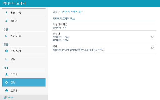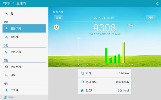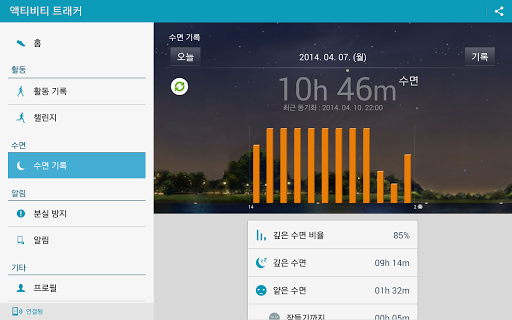 이 App은 Samsung Activity Tracker 제품과 연동하여 운동량과 수면효율을 분석하여 보여줍니다.