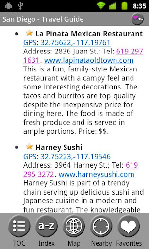 MobileReference Travel Guides provide detailed, practical information about attractions, landmarks, transportation, cultural venues, dining, lodging, history and much more. They are indexed alphabetically and by category, making it easier to access individual articles. Attractions can be viewed on an offline GPS map along with your current location so that you can easily find attractions near you as you explore the city.