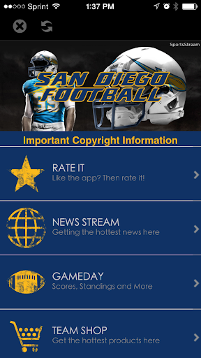 San Diego Chargers fans! If you want to latest and greatest way to keep up with your favorite team, then check out the San Diego Football STREAM+ mobile app!! ADVERTISEMENT FREE!! Get news, scores, standings, videos and more regarding your beloved San Diego Chargers.