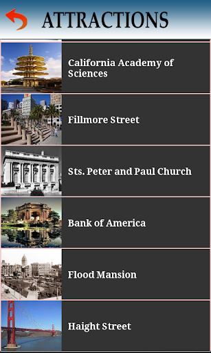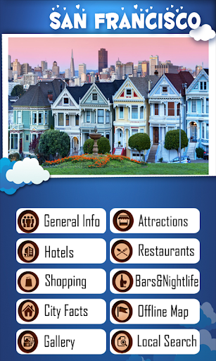 This is a premier Android app catering to almost every information of San Francisco. It features 10 different modules providing information of the San Francisco like Information,City facts, Attractions, Hotels, Restaurants, Shopping, Bars & NightLife, OfflineMap, Image Gallery, NearSearch,.