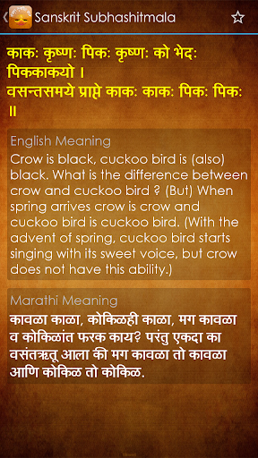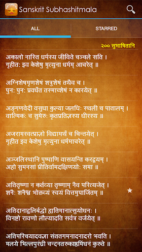 "Sanskrit Subhashitmala" [संस्कृत सुभाषितमाला] has a collection of Subhashitas [सुभाषितम्] in Sanskrit [संस्कृत] language. Some key features of the application include: