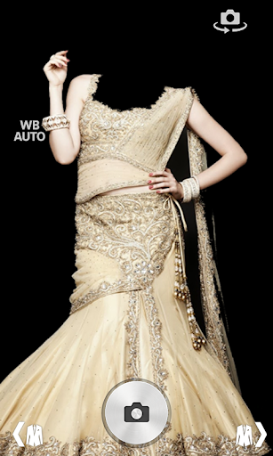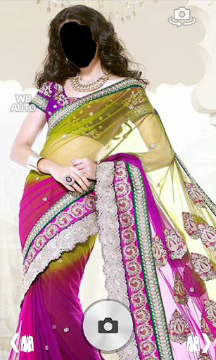 ★ Take camera photo and fit your face fit to the saree montage frames.