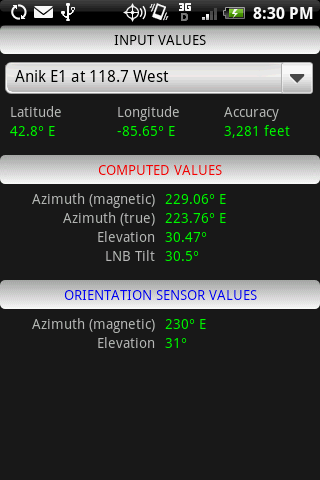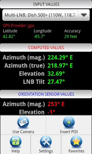 Assists in alignment of satellite dish antennas using augmented reality. Determines local position by using GPS/Skyhook; Automatically computes all values necessary to align antenna; uses magnetic sensor to help during alignment (emits sound when aligned). Ideal for RVs, Campers, aligning second dish, or use as professional installer.