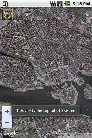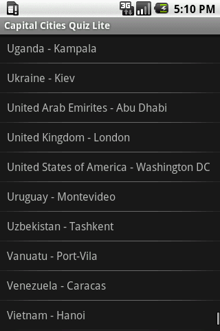 If you want to review any of the maps you can select from a complete list. This provides a handy reference guide to the world's capital cities; although viewing the maps requires a network connection, viewing the list does not.