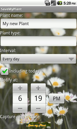 How it works: You add a new entry with specified name and type of the plant. As a next step, you can choose the watering interval, how often (every day, every 2nd or 3rd or every week or every second week) and when you want to water your plants/flowers. There is also the possibility to insert a picture of the plant and give it a name.