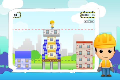 The builder gets stuck higher on the floors as the lift brakes down. Its your job to bring him safely back to ground by blasting building block very precisely beneath his feet. Download the app bring your builder down safely