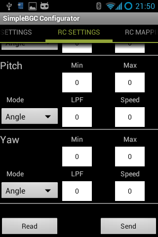 This is a special version (no bluetooth) of the sbgc configurator https://play.google.com/store/apps/details?id=nicodh.bgcConfig