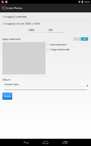 Optionally a watermark can be added. A text watermark or an image watermark can be applied.