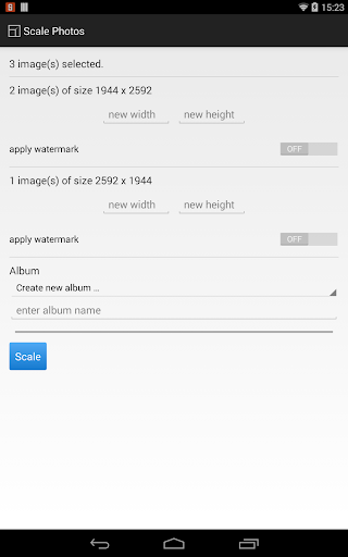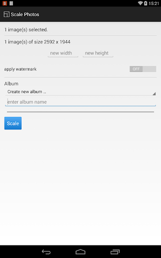 Appears as an option in the gallery to be applied to selected images. Scaled images are placed in detached album.