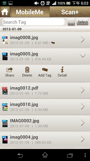 Scan+ app lets you instantly preview your scanned files in JPG or PDF format in Scan+ WiFi portable scanner. You can transfer the files from the scanner and manage them in your smart device.