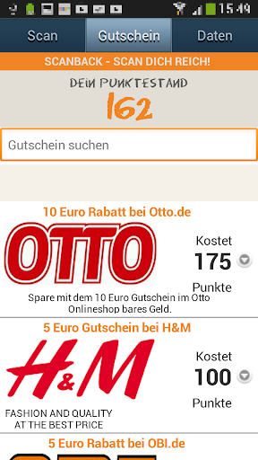 Egal, ob zu Hause oder direkt im Ladengeschäft, jedes Produkt, das gekauft wird, und einen Barcode besitzt, kann mit der kostenlosen ScanBack-App zum Punkten genutzt werden. Einfach mit der App den Barcode am Produkt einscannen, Punkte sammeln und diese dann gegen attraktive Prämien eintauschen. Schluss mit dem Dschungel aus Plastikkarten und Klebeheftchen – mit der ScanBack-App flattern die Punkte einfach und simpel direkt aufs Handy.