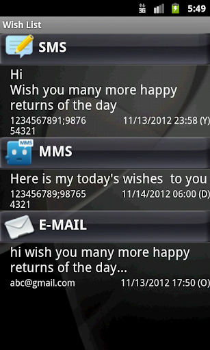 Schedule your wishes via sms mms and email using this application and your wishes will be delivered on time with out miss.
