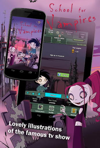School for Vampires is available for all Android smartphones and tablets with Android 2.3.x (Gingerbread), Android 3.x (Honeycomb), Android 4.x (Ice Cream Sandwich), Android 4.1.x/4.2.x/4.3.x (Jelly Bean) and higher. The game is optimized for HD-display (e.g. Galaxy Nexus, Nexus 4, Nexus 7, Nexus 10, Samsung Galaxy S3 + S4, Galaxy Tab 1 + 2, and Galaxy Note 1 + 2).