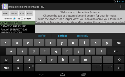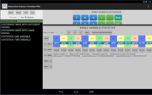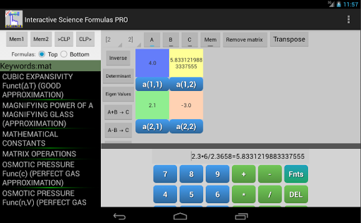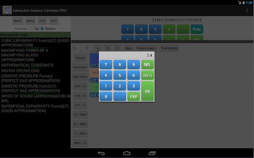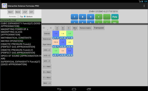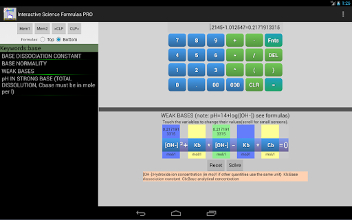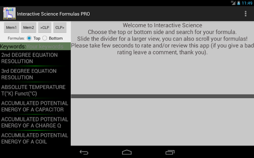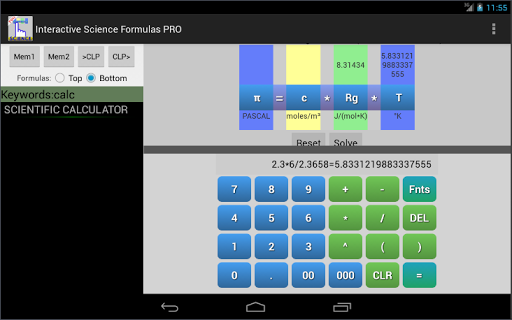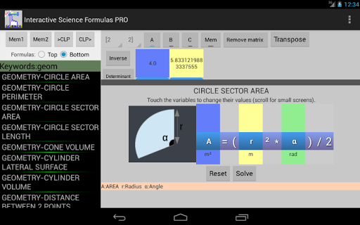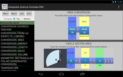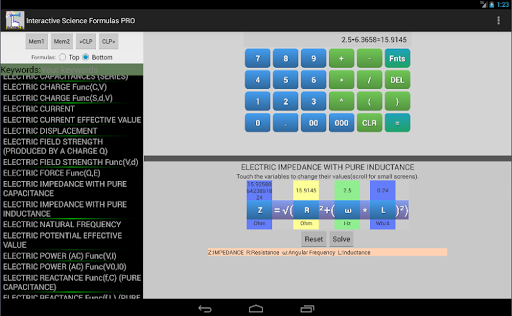 "Science Formulas PRO" is ideal for students and graduates, you will find a variety of useful formulas and tools for your daily calculus, you can enter a value by touch and solve any variable of the equation, the interactive feature of the formulas makes it easy to avoid typing or human errors.