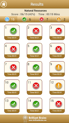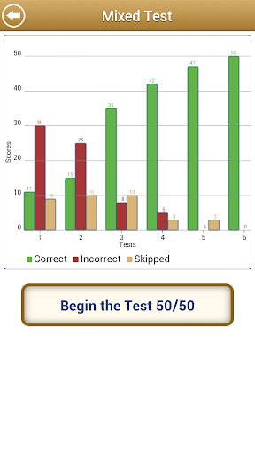 A summary of the practice test is presented at the end of each test. It shows you the score, which questions you answered correctly and where you were wrong.