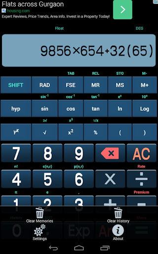 A calculator for all purposes. Now try calculation with scientific calculator on your android devices. Works on three different modes - Float, Fixed and Scientific and calculate almost all scientific and non scientific calculations in a fly.