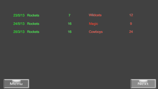 All game history for the season is accessible in the Game History screen.