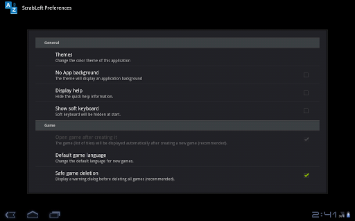 SCRABLEFT includes tile sets for 11 different languages: English of course, but also Basque, Catalan, Dutch, French, Galician, Italian, Norwegian, Portuguese, Spanish and Swedish. It is available in 6 different colored themes for a better use.