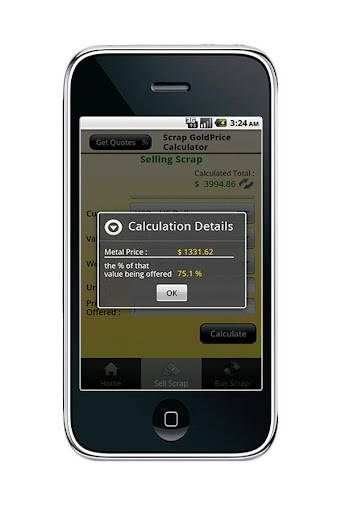 Great calculator for gold buyers and sellers. It gives you the scrap gold price of jewelry from 9 karat to 24 karat in the currency of your choice.