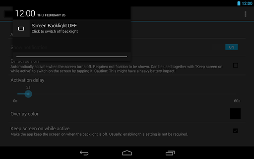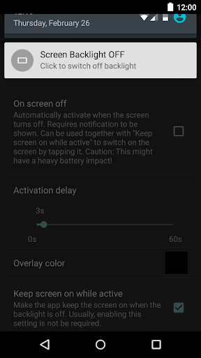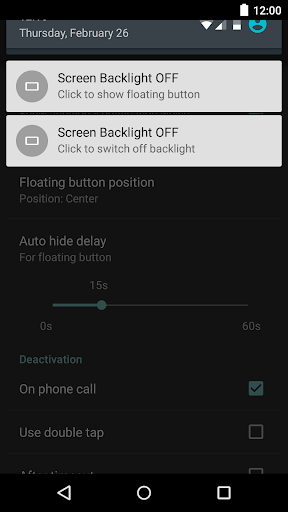 ● Notification to quickly switch off screen backlight