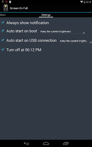 Screen on allows you to keep the screen ON with five options to adjust the brightness preventing the screen to lock and to keep the screen awake .