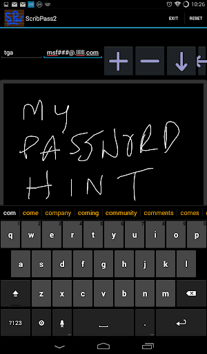 Quickly scribble down passwords or hints that will be organized by portal and user name. Since passwords are stored as image files in SQLite, they will be less likely to be culled by bots.