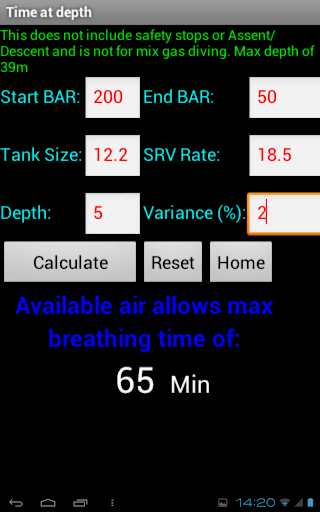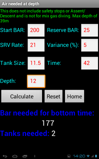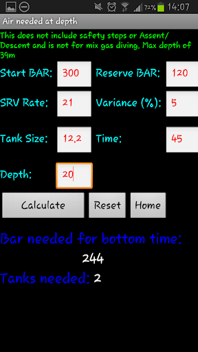 Part 3 - Uses the details you enter to calculate the BAR and tank quantity you need to complete your dive