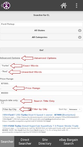 * Advanced Search Options let you search for Price range & Exact/Unwanted words