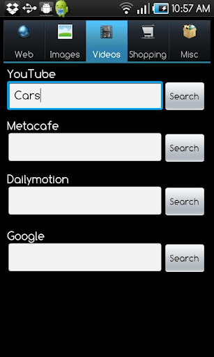This application provides an easier way to search for content on the web. Instead of using your web browser and then going to your favorite search engine, you can use this application to immediately type your query using your favorite search engine and then press search.